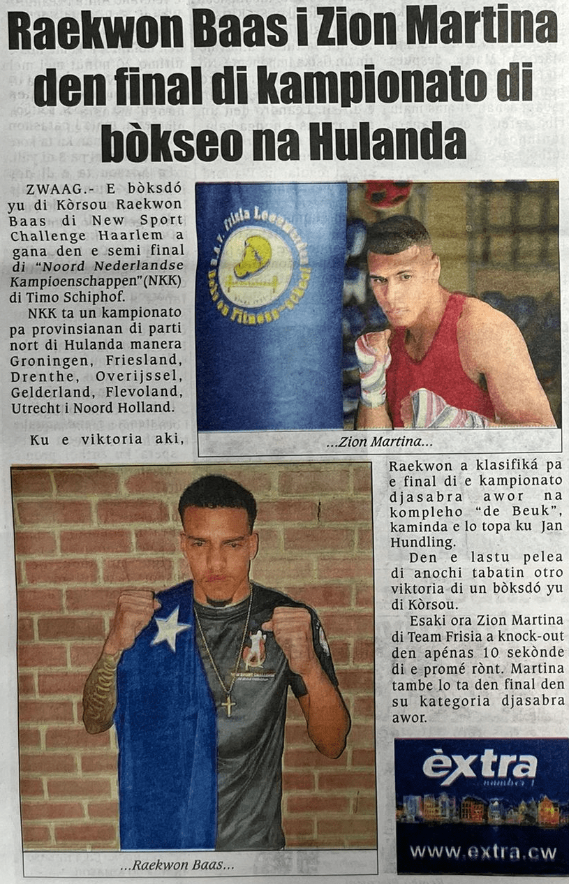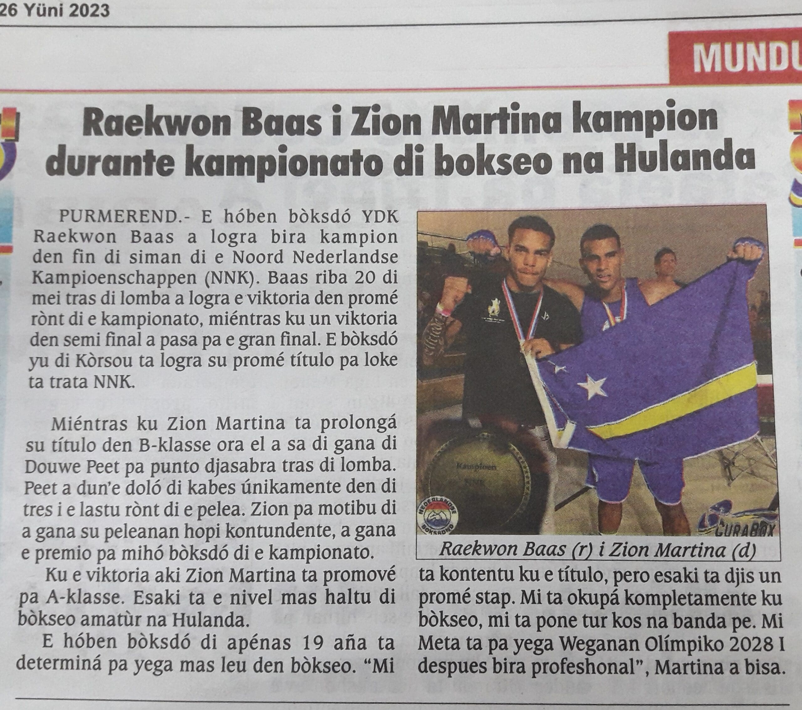 May 20, 2023, Raekwon Baas (NSC), who left Curacao to study in the Netherlands, made a victorious Dutch debut and June 17 he won the semi-final of the NNK (Noord Nederlandse Kampioenschappen) and qualified for the final.