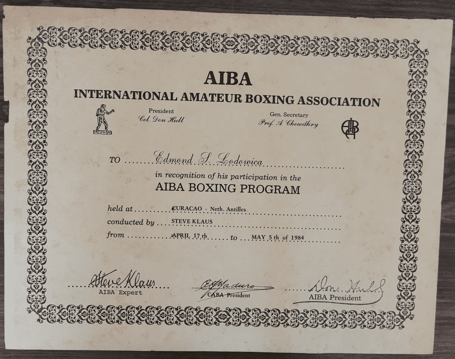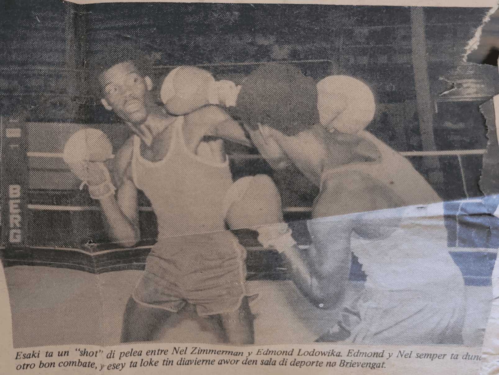 Edmond Lodowica (1958) started boxing in 1974, after receiving a pair of boxing gloves from his cousin Freddy “Floyd Patterson” Daalnoot.