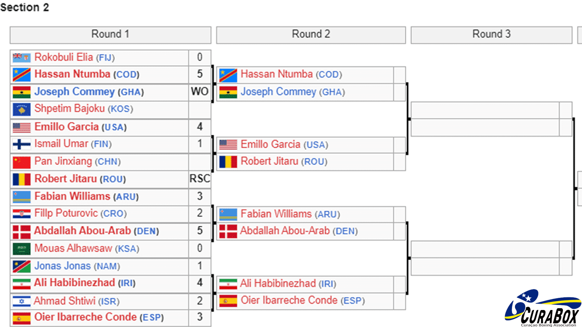 Fabian Williams won Filip Poturovic (Croatia) in the -63.5 kg class, with a total of 65 boxers. He lost against Abdallah Abou-Arab (Denmark).