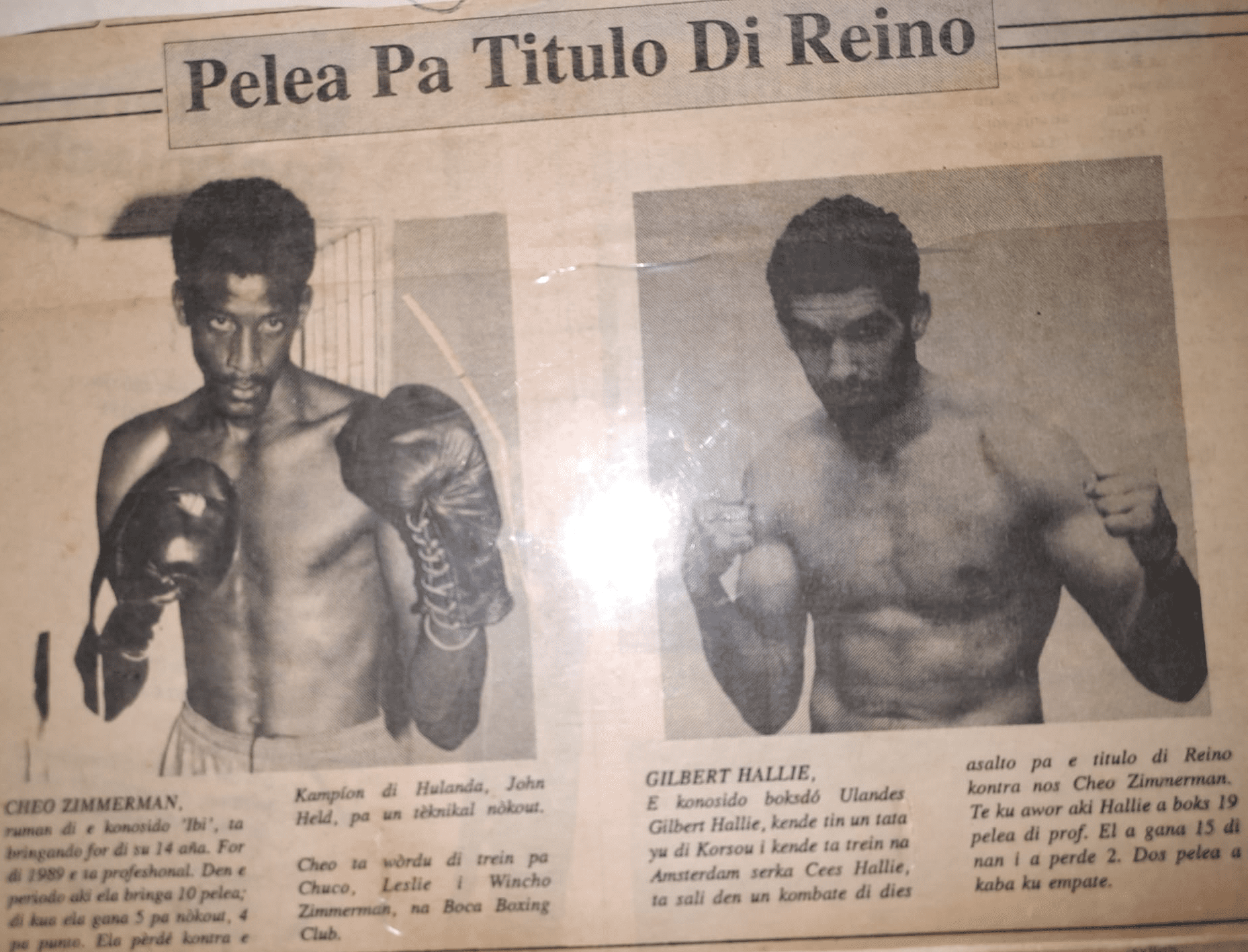 February 1, 1992 Cheo Zimmerman won title of the Dutch Kingdom vs Gilbert Hallie (Netherlands).