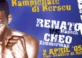 April 2, 2005 Last fight at the age of 40, Cheo Zimmerman lost Curaçao title vs Renato Haseth (World Champion Muay-Thai).