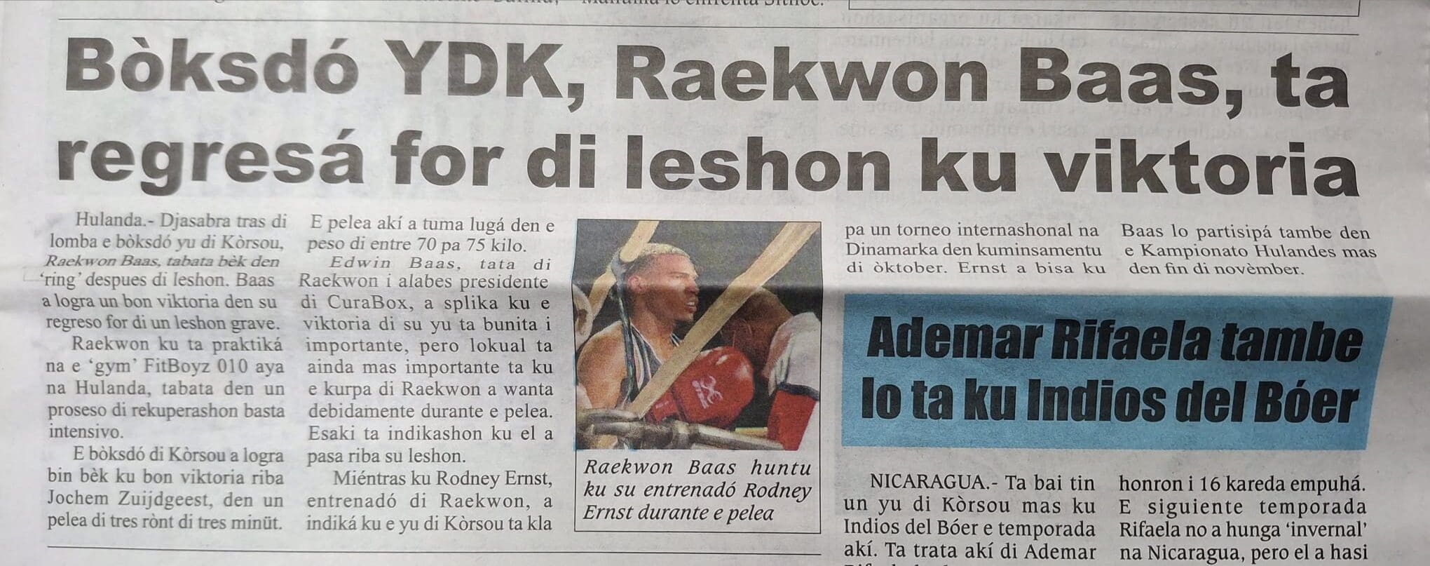 Boxer Raekwon Baas, born and raised in Curaçao, made after 18 months his return to competitive boxing with a victory in the Netherlands, October 4 2025.