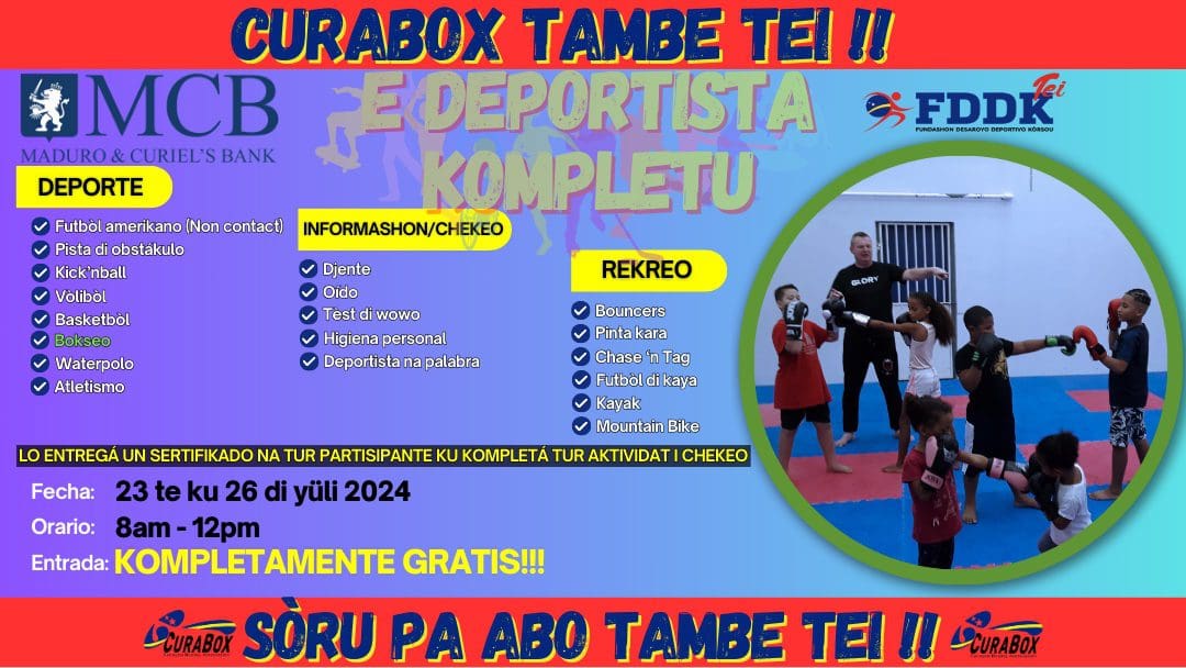 During the school holidays on July 23, 24, 25 and 26 FDDK (Fundashon Desayoro Deportivo Korsou) organizes a “vakantieplan” for children aged 5 to 13 years, at SDK (Sentro Deportivo Korsou) Brievengat.